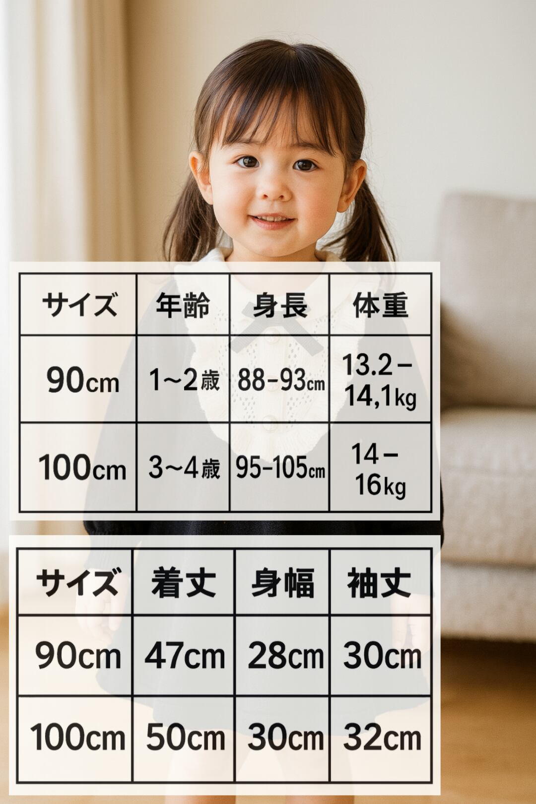 着丈 約48cm、身幅 約30cm、袖丈 約32cm