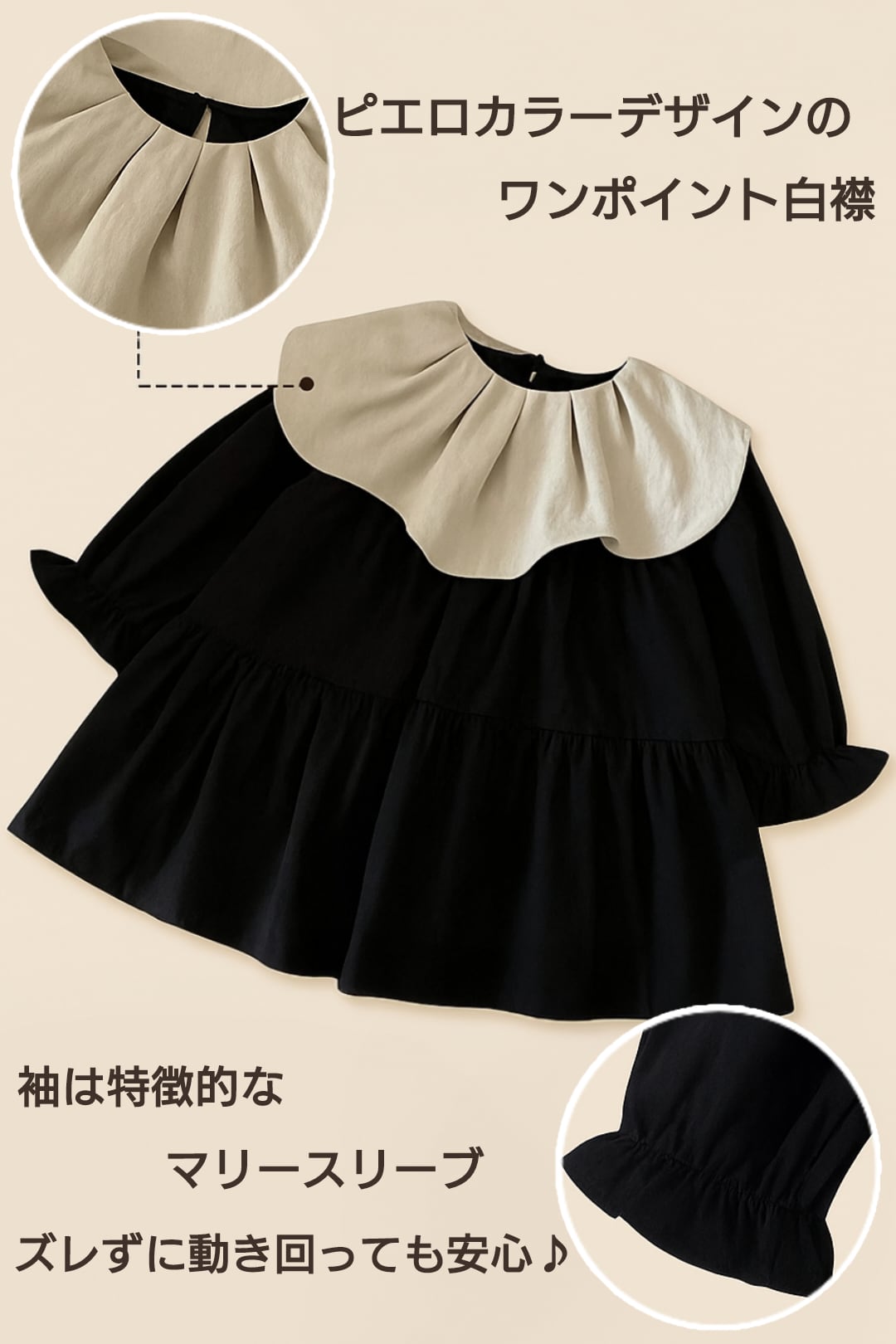 【新品】ベビー 女の子 ワンピース 長袖 ピエロカラー 礼服 結婚式 冠婚葬祭
