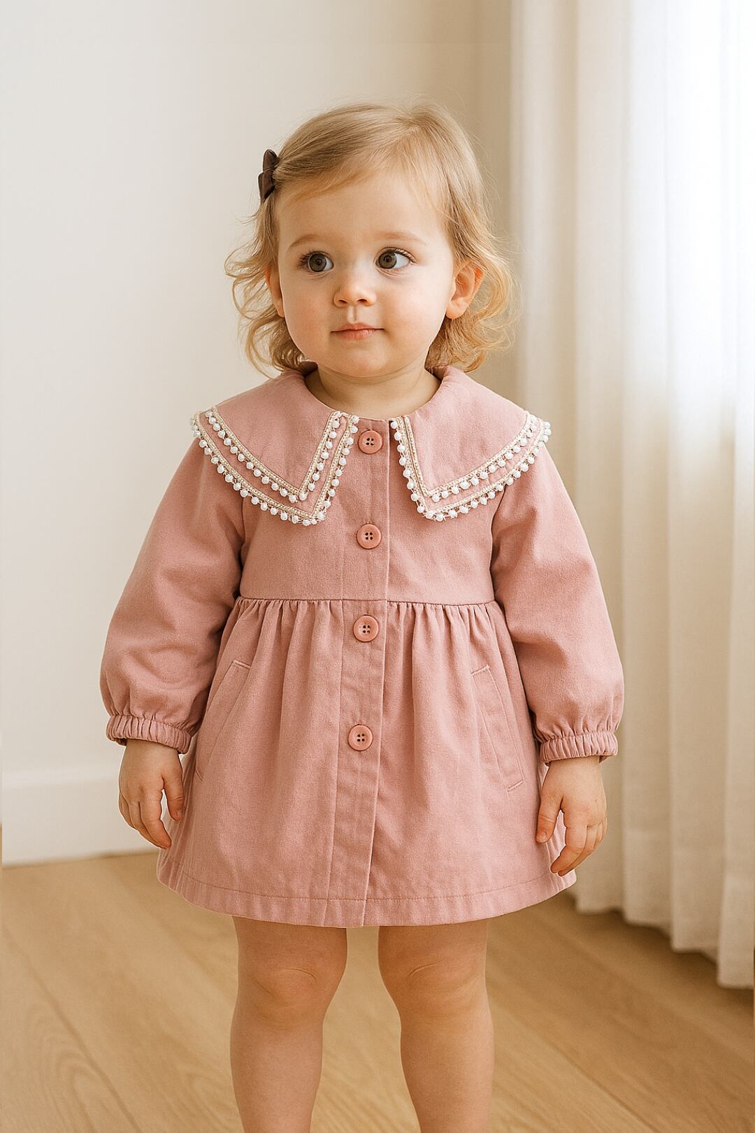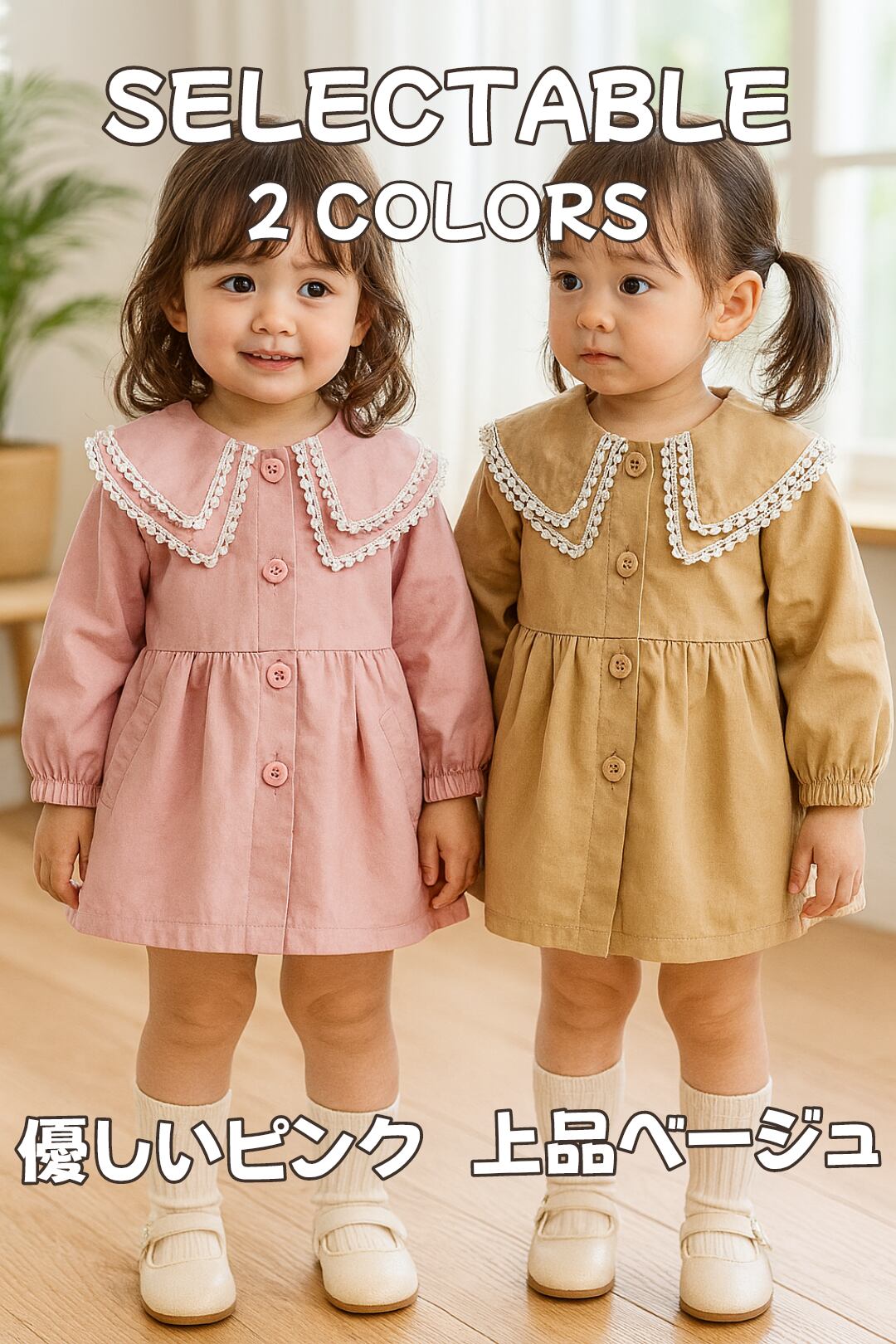【新品】90㎝ ベビー 女の子 ワンピース 長袖 コート ベージュ くすみピンク 発表会