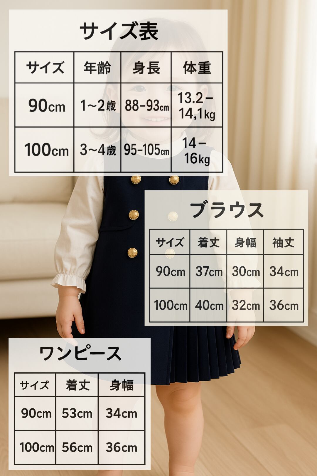 白のブラウスとネイビーのワンピースがセットになってます♡